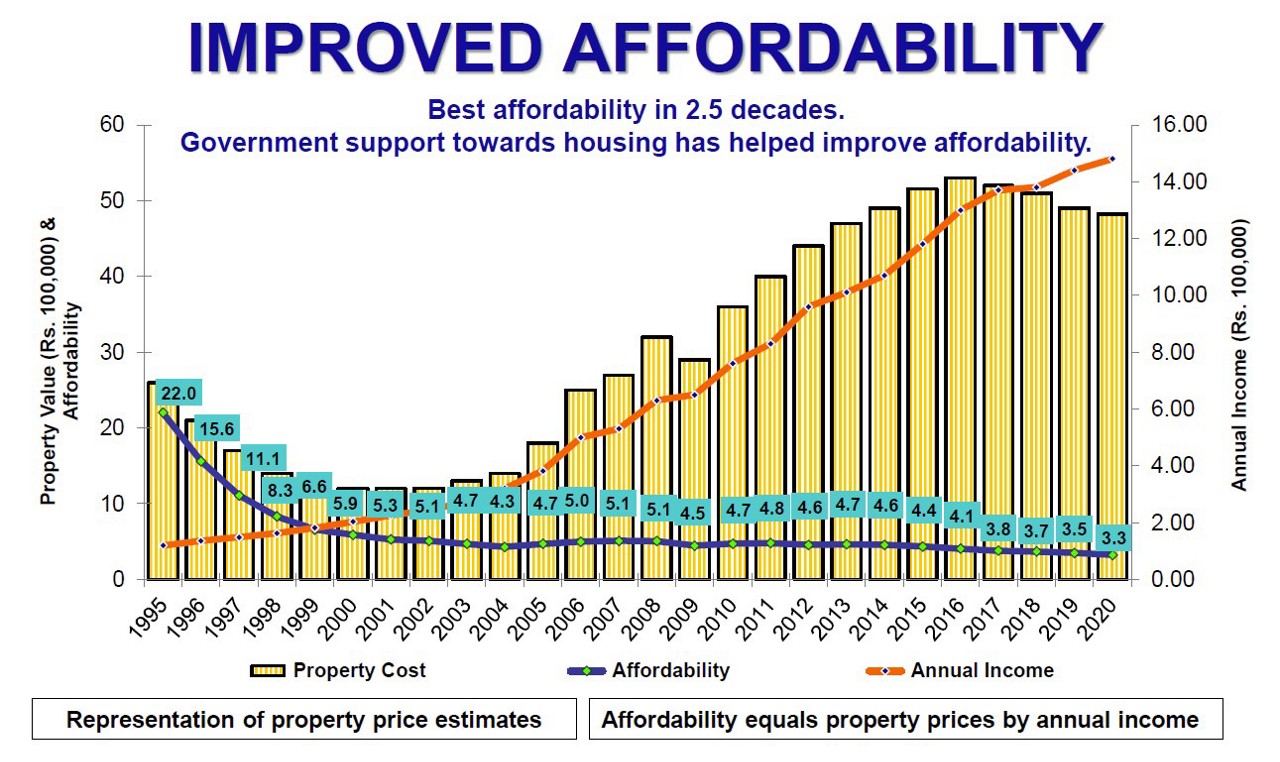 “More than ever before, people will want to own their homes. People will go to any length to hold on to their homes” – says Deepak Parekh’s (Chairman of HDFC8)*. Structural changes are afoot in how people view homes and the need for work spaces within homes. And property is more affordable today than at any time in the last 25 years9. Tax incentives for affordable housing materially reduce the cost of servicing mortgages. India remains one of the most attractive mortgage markets in the world due to low home ownership, low mortgage penetration and a young population. Mortgages would have to grow at twice the rate of GDP in the next 10 years just to catch up with China. This presents favourable conditions for the start of a multi-year property cycle.